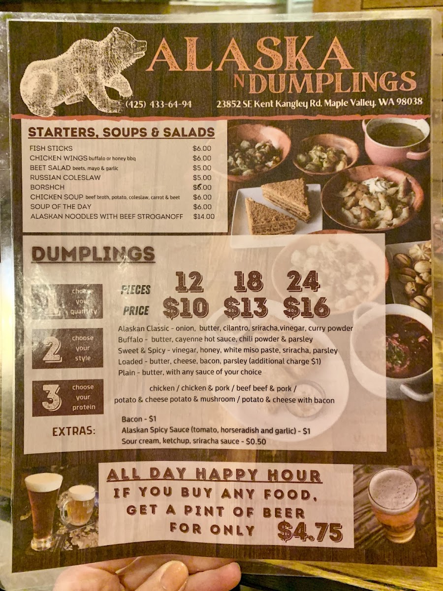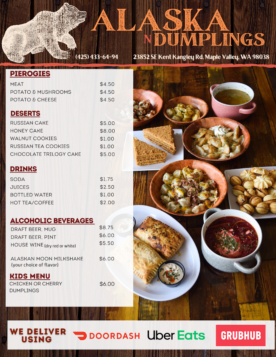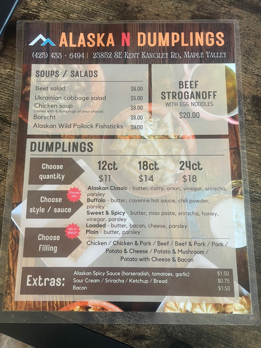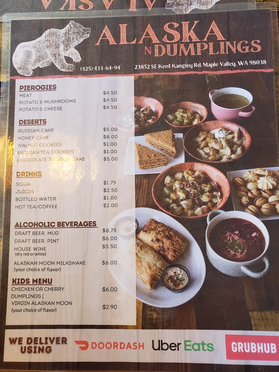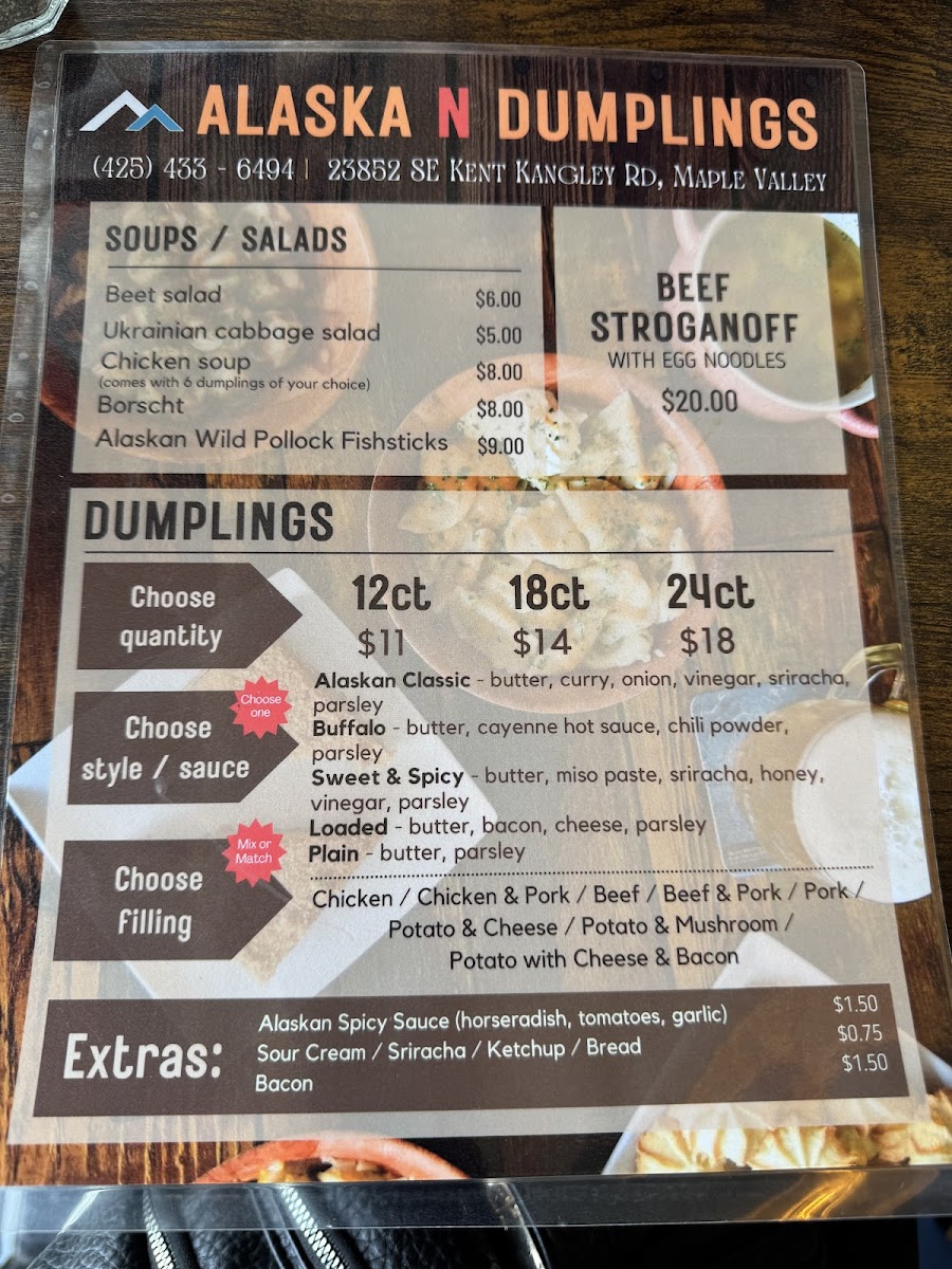 Welcome to Alaska N Dumplings, a cozy culinary gem located at 23852 SE Kent Kangley Rd, Maple Valley, WA. Specializing in authentic dumplings, the menu delights with options such as Sweet and Spicy Dumplings, available in portions of 12, 18, or 24 pieces, and kebabs that promise a satisfying experience.